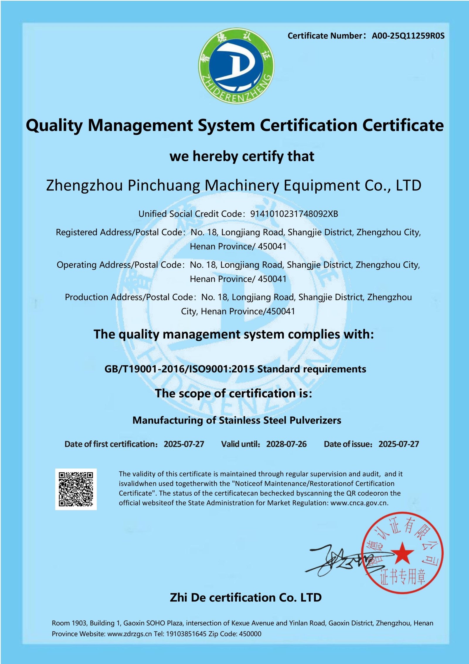 Zhengzhou Pinchuang Machinery Co., Ltd. is a professional manufacturer dedicated to powder processing equipment, integrating R&D, production, sales, and service into one. Our core products include pulverizers, grinders, mixers, and complete production lines, which are widely used in food processing, pharmaceuticals, chemicals, building materials, recycling, and environmental protection industries.